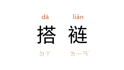 ⒈ 亦作“搭连”。一种布制的长方形口袋,中间开口,两头各有一袋,可以挂在肩上或扣在腰间。