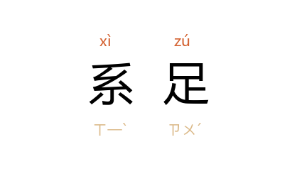 ⒈ 唐 李复言 《续玄怪录·定婚店》载, 韦固元和 中旅次 宋城,遇老人倚布囊坐于阶上,向月检书。 固 问所检何书?答曰:天下之婚牍。又问囊中何物?答曰:赤绳子。以系夫妻之足。此绳一系,虽仇敌之家,贫贱悬殊,终不可逭。后以“繫足”为缔结婚姻大典。参见“月下老人”。
