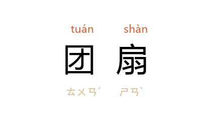 ⒈ 圆形有柄的扇子。古代宫内多用之,又称宫扇。乐府歌曲名。指《团扇郎歌》。乐府歌曲名。指汉·班婕妤所作《怨歌行》。因诗中有“裁为合欢扇,团团似明月”等诗句,故名。