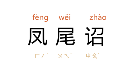 引唐 皮日休 《江南书情二十韵》:“君批凤尾詔,我住 虎头巖。”宋 苏轼 《用前韵再和霍大夫》:“行看凤尾詔,却下 虎头州。”王十朋 集注引《纪闻谭》:“晋元帝 践祚,凡诸侯笺奏,批之曰言诺,而草书若字之尾如凤形,故谓之凤尾詔焉。”