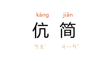 引司马迁 至伉简,然作《卫青传》不名,但谓之大将军; 贾谊 何等人也,而谓之爱幸於 河南 太守 吴公,此等语甚可鄙,而 迁 不知,习俗使然也。”宋 叶适 《故朝奉大夫知峡州宋公墓志铭》:“﹝公﹞外侃乐而中伉简,於其鉅儒名人,虽无不敬爱,然犹不自满。”