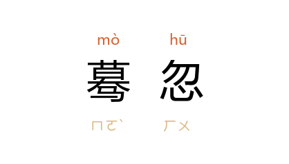 ⒈ 忽然。宋·张炎〈浪淘沙·寒食不多时〉词:「晚妆不合整蛾眉,蓦忽思量张敝画,又被愁知。」也作「蓦地」。