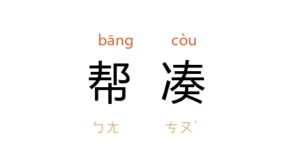 引《老残游记·第五回》:「诸位有甚么法子,大家帮凑想想。」