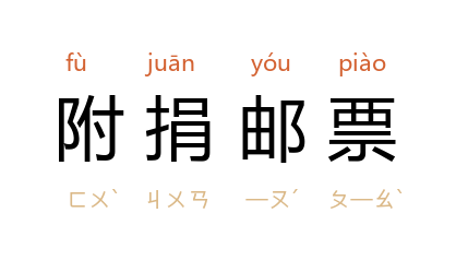⒈ 大陆地区指为筹集公共建设资金所发行的邮票。面值虽包括邮资和捐资,但使用时只承认邮资部分。