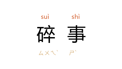 引宋 周必大 《二老堂诗话·老人十拗》:“郭功父 老人十拗,谓‘不记近事记得远事……儿子不惜惜孙子,大事不问碎事絮。’”鲁迅 《书信集·致陈烟桥》:“近半年来,因为生了一场病,体力颇减,而各种碎事,仍不能不做。”