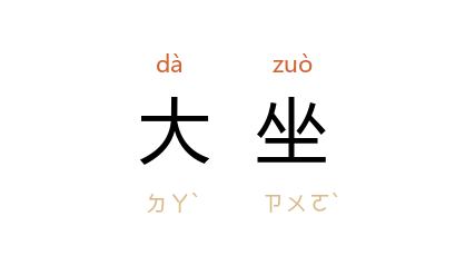 引《宋书·王弘传》:“太尉 江夏王义恭 当朝, 锡 箕踞大坐,殆无推敬。”清 俞正燮 《癸巳类稿·黟县山水记》:“又东南为 霸山,山在县东南二十里,其峰严重如人大坐。”王士美 《铁旋风》第一部第三章二:“老英雄盘腿大坐在草地上。”