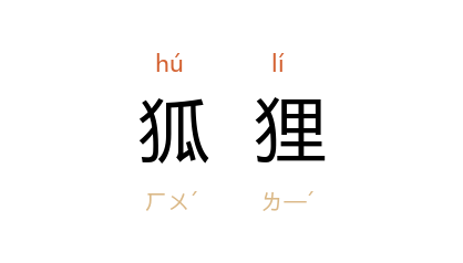 ⒈ 本指狐和狸两种动物,后多专指狐。