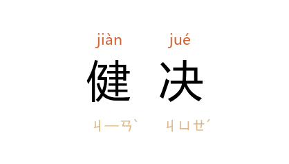 引唐 白居易 《史备可濠州刺史制》:“史备 变通健决,有良吏之用。”宋 苏轼 《答道源秘校》:“江 令竟不肯少留,健决非庸人所及也。”宋 杨万里 《与张严州敬夫书》:“因燕居深念:若恩信不可行,必待健决而后可以集事,可以行令,则六经可废矣。”