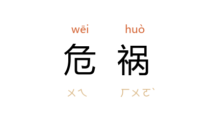 引《南史·蔡廓传》:“太尉 沉庆之 深虑危祸,闭门不通宾客。”唐 孙棨 《北里志·郑合敬先辈》:“呜呼,有危梁峻谷之虞,则回车返策者众矣。何危祸之惑甚於彼,而不能戒於人哉?”黄中黄 《沉荩》第一章:“呜呼!吾同胞何知其一而不知其二,何鉴于目前之危祸,而忘其无形之痛苦也!”