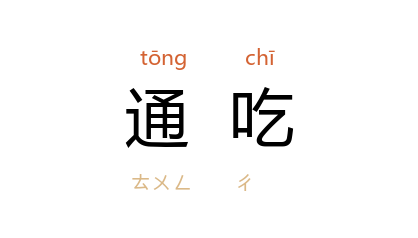 ⒉ 赌博时,庄家或一家独赢,其他赌客全输,称为「通吃」。
