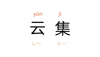 ⒈ 形容从四面八方迅速集合在一起。参见“云集响应”。