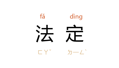 ⒈ 凡法令所规定,统称为「法定」。