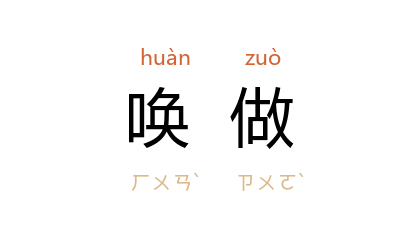 引《朱子语类》卷十七:“直是到这里方唤做极是处,方唤做至善处。”金 董解元 《西厢记诸宫调》卷三:“初间唤做得为夫妇,谁知今日,却唤俺做哥哥。”《老残游记》第十回:“因人所看的方面不同,唤做个盈亏圆缺。”