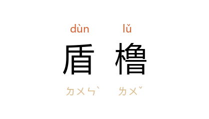 ⒈ 亦作“盾卤”。盾牌。古代防护兵器。亦喻屏蔽或支援的力量。櫓,大盾。
