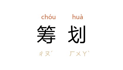 引《三国志·卷二八·魏书·邓艾传》:「艾筹划有方,忠勇奋发,斩将十数,馘首千计。」《儒林外史·第三五回》:「望先生悉心为朕筹划,不必有所隐讳。」