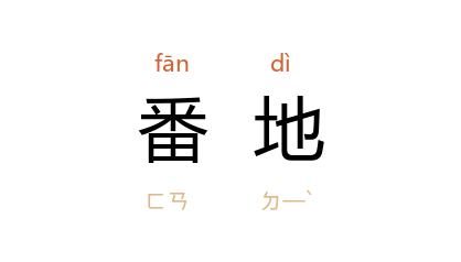 ⒈ 异域。通常因种族的优越感而称落后地区为番地。