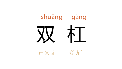 ⒈ 一种运动器械。由两平行的木杠制成,其下以铁柱固定于地面,可自由调整间距、高度,运动者可在双杠上做各种动作。
