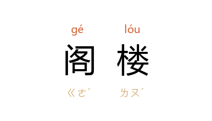 引金近 《这一天》:“那是一个附在屋顶下面的阁楼,要搭一乘活动的竹梯子才能上去。”《花城》1981年第3期:“我要给小孙女买一双只值二元钱的小皮鞋,一位女售货员爬到阁楼上找了好久。”