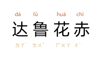 ⒈ 蒙语的音译。元职官名。指镇压者、制裁者、盖印者。转而有监临官、总辖官之意。元代汉人不能任正职,朝廷各部及各路、府州县均设达鲁花赤,由蒙古或色目人充任,以掌实权。