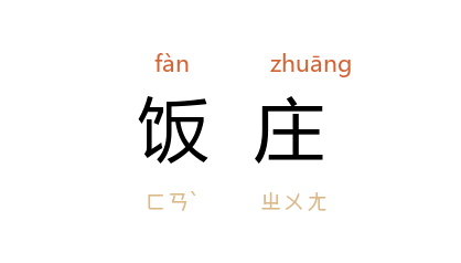 引《儿女英雄传》第一回:“慢説外头的戏馆、饭庄、东西两庙不肯教他混跑,就连自己的大门也从不曾无故的出去站站望望。”徐珂 《清稗类钞·饮食·京师宴会之肴馔》:“光绪 己丑、庚寅间,京官宴会,必假座於饭庄。饭庄者,大酒楼之别称也。”