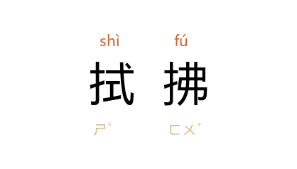 引宋 彭乘 《墨客挥犀》卷三:“使僧呼梯取之,拭拂视之,乃 鲁国 颜真卿 书。”清 唐孙华 《国学进士题名碑》诗:“拭拂苍苔看残碣,三叹流涕沾滂沱。”清 恽敬 《<坛经>书后一》:“时时勤拭拂,不使惹尘埃。”