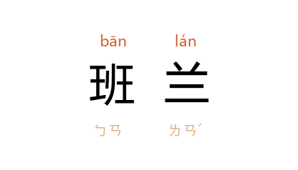 引《后汉书·南蛮传序》:“衣裳班兰,语言侏离。”《三国志·吴志·吴主传》:“兴平 中, 吴 中童謡曰:‘黄金车,班兰耳,闓昌门,出天子。’”《南史·张敬儿传》:“﹝ 敬儿 ﹞既得开府,又望班剑,语人曰:‘我车边犹少班兰物。’”