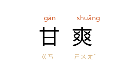 引唐 李绅 《别石泉》诗序:“﹝泉﹞在 惠山寺 松竹之下,甘爽,乃人间灵液。”孙景瑞 《红旗插上大门岛》第十五章:“雷大鹏 的筷子刚一触到大黄鱼……一种滑腻、鲜嫩而又甘爽的感觉,引起了强烈的食欲。”