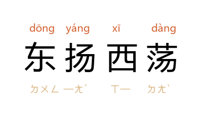 ⒈ 四处飘泊不定。比喻生活不安定。也作「东飘西荡」。