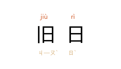 ⒈ 从前。唐·韦应物〈燕李录事〉诗:「此日相逢思旧日,一杯成喜亦成悲。」也作「旧时」。