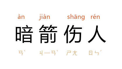 ⒈ 趁人不备,用狡诈阴险的手段伤害人。也作「暗箭中人」。