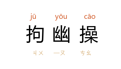 参阅《乐府诗集·琴曲歌辞一·拘幽操》 宋 郭茂倩 题解。亦省作“拘幽”。 明 王世贞 《艺苑卮言》卷二:“余读《琴操》所称记 舜、禹、孔子 诗,咸浅易不足道。 《拘幽》, 文王 在繫也,而曰‘ 殷 道圂圂,浸浊烦,朱紫相合,不别分。’”