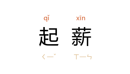 例如:「他刚进公司时的起薪虽不高,但因工作认真负责,马上便调薪了。」