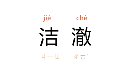引晋 王嘉 《拾遗记·前汉上》:“以玉精为盘,贮冰于膝前,玉精与冰同其洁澈。”唐 元稹 《冷泉亭记》:“水与阶平……矧又潺湲洁澈,粹冷柔滑。”唐 吴融 《红白牡丹》诗:“殷鲜一半霞分綺,洁澈旁边月颭波。”