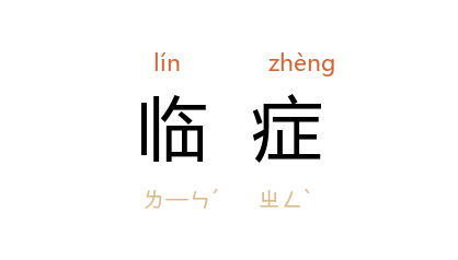 引《儒林外史》第三一回:“‘熟读 王叔和,不如临症多。’不瞒太爷説,晚生在江湖上胡闹,不曾读过什么医书,却是看的症不少。”闻一多 《关于儒、道、土匪》:“医生临症,常常有个观望期间,不到病势相当沉重,病象充分发作时,正式与有效的诊断似乎是不可能的。”