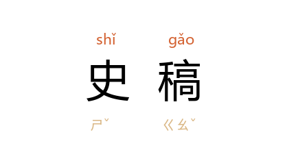 ⒈ 未经最终定稿的历史著作。如《清史稿》。