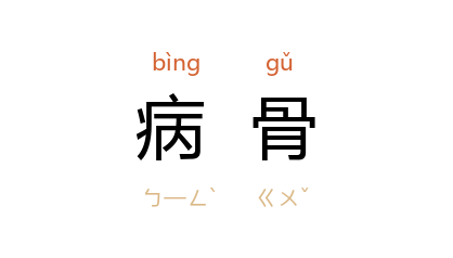 引唐·李贺〈示弟〉诗:「病骨犹能在,人间底事无。」宋·陆游〈病起书怀〉诗:「病骨支离纱帽宽,孤臣万里客江干。」