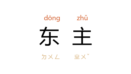 ⒈ 汉班固《西都赋》:“有西都宾问于东都主人。”后因以“东主”为东都主人的省称。
