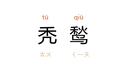 ⒈ 亦作“秃秋”。水鸟名,头项无毛,状如鹤而大,色苍灰,好啖蛇,性贪恶。