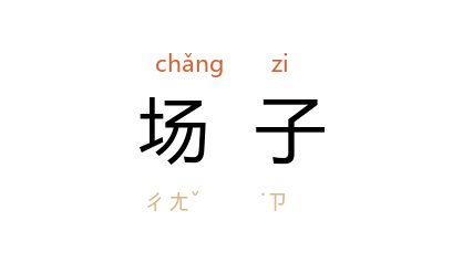 ⒊ 适应某种需要的较大的活动处所。如广场、会场、操场、运动场等。