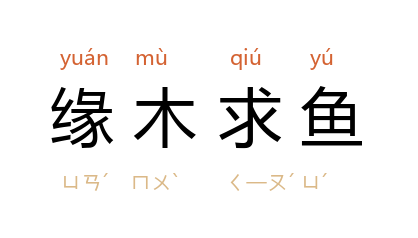 引《孟子·梁惠王上》:「以若所为,求若所欲,犹缘木而求鱼也。」