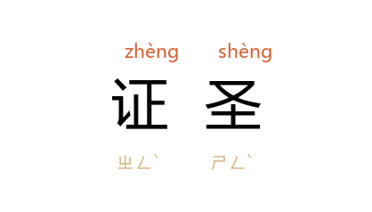 引南朝 齐 萧子良 《净住子·敬重正法门》:“杂録正经,七千餘卷,词义明敏,谈味无遗,近则安国利人,远则超凡证圣。”宋 张商英 《宗禅辩》:“一切众生,小则迁善远罪,大则明心证圣。”