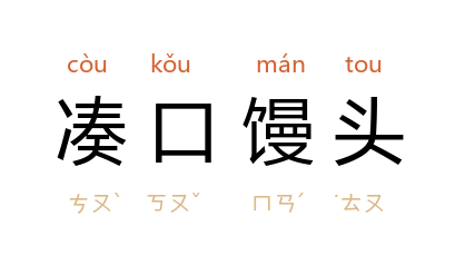 引清 李渔 《奈何天·改图》:“[丑云]还要另娶一房。[副浄云]这等不难,有两箇凑口馒头在那里,任凭你喫那一箇。”清 李玉 《永团圆·宦儒闹府》:“老夫为 江老 事体,费了许多气力,不意反落 蔡生 圈套,把我 老贾 凑口馒头,劈手夺了去。”