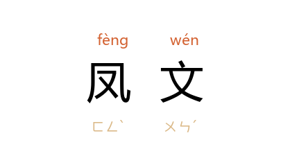 引唐 李峤 《柳》诗:“列宿分龙影,芳池写凤文。”《云笈七籤》卷七:“此经旧文,藏在太上六合紫房之内,有六头师子,巨兽夹墻,玉童玉女,侍卫凤文。”
