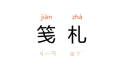 ⒉ 牋札:亦作“牋札”。书信;公文。