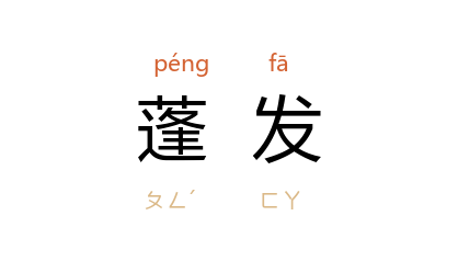⒈ 形容头发散乱。也作「蓬头」、「蓬首」。