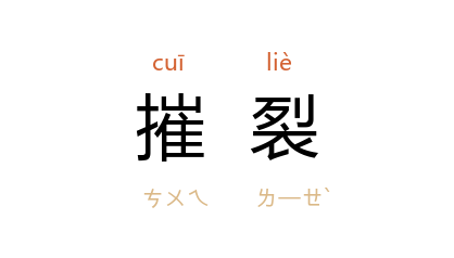 引汉 蔡琰 《悲愤诗》:“慕我独得归,哀叫声摧裂。”明 梁辰鱼 《浣纱记·谈义》:“父兄深怨,岂敢忘之,兴言及斯,不觉肝肠摧裂。”清 姚际唐 《避氛后集·零丁洋》诗:“旬日之中两永诀,茫茫对此心摧裂。”