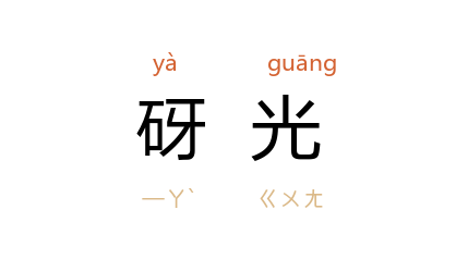 ⒈ 用光石碾磨纸张、皮革、布帛等物,使紧密光亮。砑光帽的省称。眉来眼去;调情戏谑。