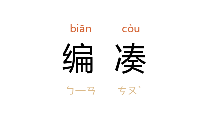 ⒈ 编造凑合。 郭沫若 《海涛集·南昌之一夜五》:“简直就像戏里编凑的情节一样。