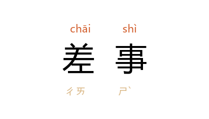 英语poor, not up to standard, errand, assignment, job, commission, CL:件[jian4], see also 差使[chai1 shi5]