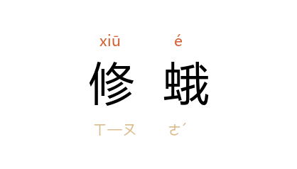 引宋 柳永 《尉迟杯》词:“天然嫩脸修蛾,不假施朱描翠。”宋 晏殊 《踏莎行》词:“弱袂縈春,修蛾写怨。秦筝宝柱频移雁。”清 珠泉居士 《雪鸿小记补遗》:“余每于城阴放棹时,邂逅水亭,修蛾曼睩,貌乃秀韵非常。”